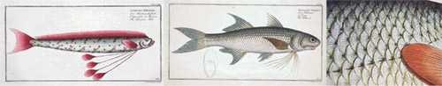 ピラミッドを背景に佇むコウノトリ。おそらく、アフリカとヨーロッパを渡るシュバシコウと思います。次の奇怪なものは、アオイガイ。羽が生えているように見えますが、本体部分と貝の部分を別々に見て、こんな風に浮かんでいるのではないかと想像したものと思います。この発想力に拍手。しかし、図版によっては何を示しているのかが分かりづらいものもあります。最後の図版は植物のヤシの木を示しているのですが、エキゾチックな南方の風景画としか見えません。今回はご紹介できませんでしたが、マグマが冷えて固まったときに出来る柱状節理の景観などもあり、絵画のようなこの本の図は私好みです。気に入っていただけたら幸いです。